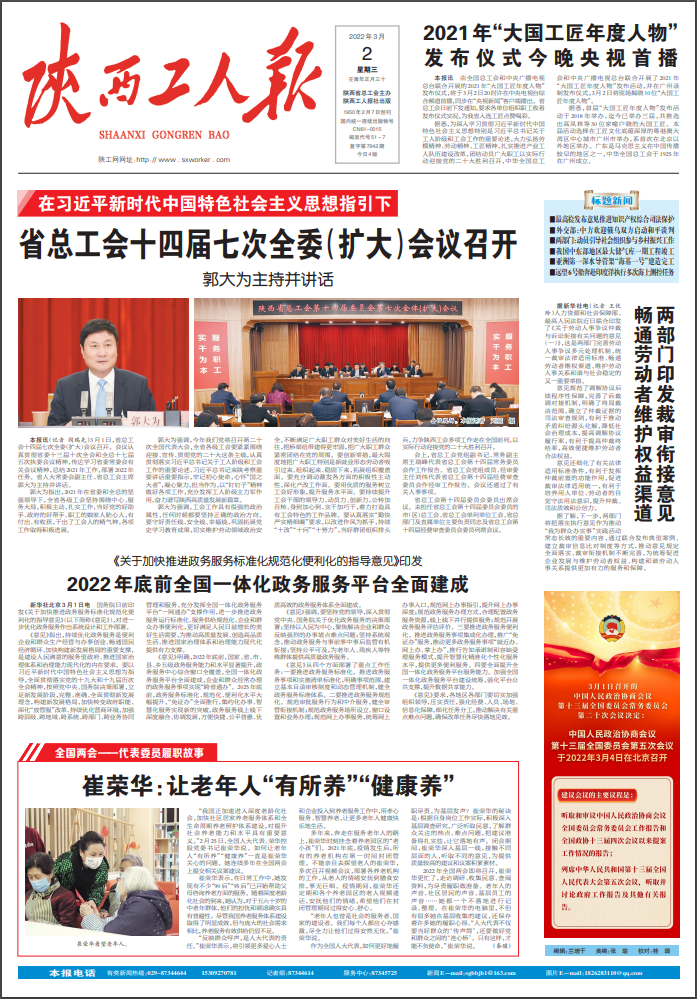 《陜西工人報》沐浴改革開放的陽光雨露,在宣傳黨的路線、方針、政策,報道廣大職工在兩個文明建設(shè)中的新成就和新經(jīng)驗,弘揚勞動模范和先進(jìn)人物的新思想和新精神,反映基層職工的正當(dāng)要求和合理建議,傳播省內(nèi)外、國內(nèi)外發(fā)生的重大新聞事件等方面,都發(fā)揮了自己應(yīng)有的積極作用!〗鼛啄陙,陜西工人報的全體編采人員在“三個代表”重要思想的指導(dǎo)下,在省總工會的直接領(lǐng)導(dǎo)下,通過不斷探索,逐步樹立了“維權(quán)是工會的立身之本,也是工人報的立身之本”的觀念,在整個報道工作中,重點突出了替職工說話、替弱勢群體說話的“維權(quán)”報道。我們始終把堅定的政治方向放在首位,始終強調(diào)政治意識、責(zé)任意識、大局意識、法律意識和創(chuàng)新意識,通過“大維權(quán)”聯(lián)系了眾多的基層群眾,使報紙的社會影響力不斷提高。