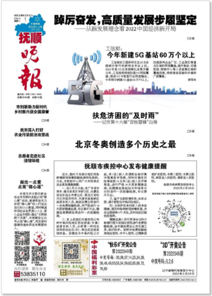 《撫順晚報(bào)》由撫順日?qǐng)?bào)社主辦,是撫順地區(qū)最?lèi)?ài)讀者歡迎,發(fā)行量最大的媒體之一,日發(fā)行量近5萬(wàn)份