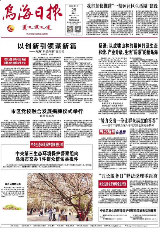 1983年改為周2刊,1984年改為周3刊,1991年改為周4刊,1992年改為4開4版周5刊,并更名為《烏海日報》。2001年,《烏海日報》擴為對開4版周5刊。