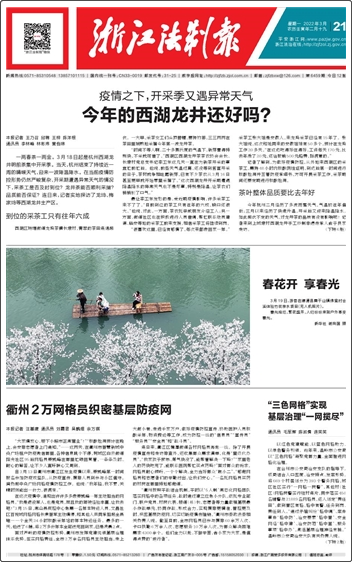 《浙江法制報》創(chuàng)刊于1984年5月,為浙江省唯一公開發(fā)行的法制類報紙,時任省委書記王芳為報紙題寫報名!墩憬ㄖ茍蟆芬“宣傳法制、弘揚正氣、鞭韃邪惡”為辦報宗旨,大力宣傳民主法制建設,宣傳平安浙江、法治浙江建設。