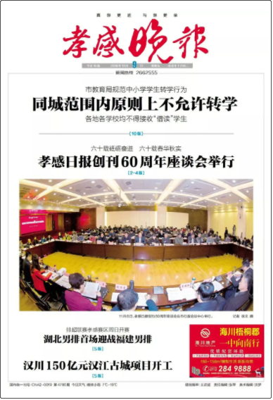 《孝感晚報》是全國范圍內(nèi)較早創(chuàng)刊的地市級都市晚報,本市惟一的都市化報紙,具有大眾化、娛樂化的顯著都市報紙的特征,晚報及時準確的報道分析焦點新聞事件,展示古城豐富多彩的現(xiàn)代都市生活。
