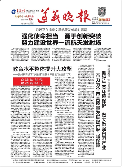 《遵義晚報(bào)》創(chuàng)刊于1985年,四開二十四版,全國(guó)發(fā)行。是一張集知識(shí)性、趣味性、可讀性為一體,最受都市百姓喜愛的地方性城市晚報(bào)。