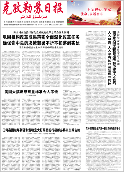 《克孜勒蘇日報》創(chuàng)刊于1957年,是克州黨委機關(guān)報,出版漢語、維吾爾語、柯爾克孜語三種文版的報紙。在單位漢族、維吾爾族、柯爾克孜族同事們的共同努力下,三種語言的報紙同步編印發(fā)行,全州各民族同胞同時能從報紙上了解到黨和政府的各項惠民政策。多年來,克孜勒蘇日報的受眾遍布全州各族群眾。這些都印證了中國政府歷來依法保障各民族使用和發(fā)展本民族語言文字的權(quán)利。