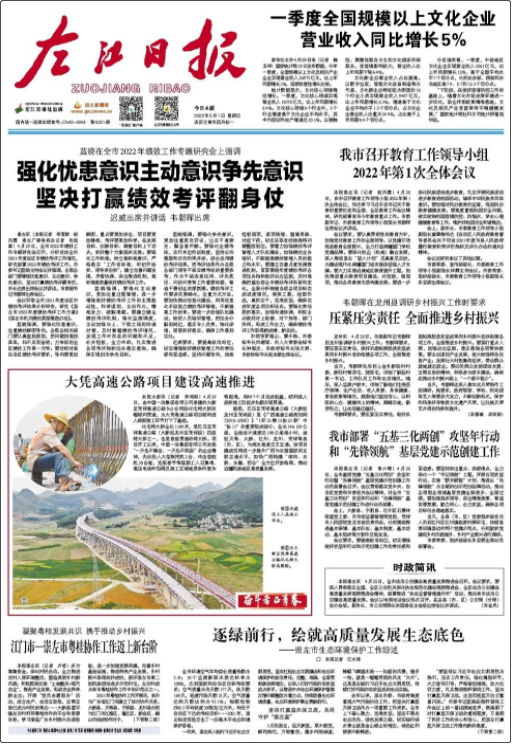 《左江日報》創(chuàng)刊于1992年,黨報特點與都市報風(fēng)格并存,欄目眾多,信大,指導(dǎo)性、可讀性、實用性強。主要訂戶及讀者為黨政機關(guān),人民團體。企事業(yè)單位的十部職工,在校師生,鄉(xiāng)鎮(zhèn)群眾和個體工商戶。立足南寧和崇左,面向全國。以南寧市和崇左市為依托,主要覆蓋南寧市和崇左市16個縣(市),區(qū)域人口達800多萬,目前發(fā)行量超過8萬份。作為崇左市的黨委機關(guān)報,左江日報開設(shè)崇左新聞網(wǎng)“一報一網(wǎng)”是崇左市對外宣傳的重要窗口。