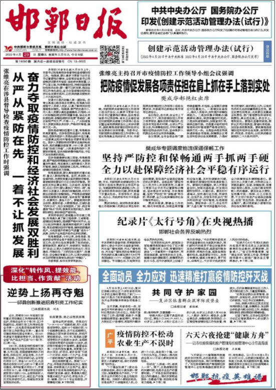 《邯鄲日報(bào)》創(chuàng)刊于1952年3月1日。中國共產(chǎn)黨邯鄲市(原地區(qū))委員會(huì)機(jī)關(guān)報(bào)。集指導(dǎo)性、思想性、可讀性、服務(wù)性于一體,在高揚(yáng)主旋律,堅(jiān)持正確輿論導(dǎo)向的前提下,貼近實(shí)際、貼近群眾、貼近生活。其品牌專欄有《邯鄲論壇》、《省內(nèi)要聞?wù)帯、《?zhí)法前沿》、《熱點(diǎn)透視》、《科普之光》、《家園視窗》、《商語茶座》、《憑欄物語》等!逗惾請(bào)》發(fā)行量6萬份左右。現(xiàn)有編采人員100余人,其中正高新聞職稱7人,副高新聞職稱25人。