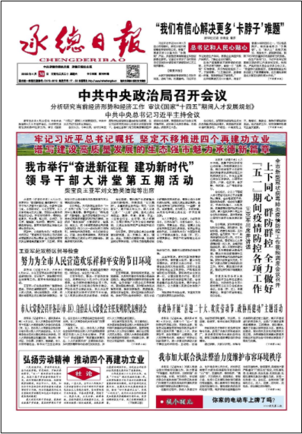 《承德日?qǐng)?bào)》社創(chuàng)辦于1945年,是承德市委機(jī)關(guān)報(bào),是承德市最具權(quán)威的新聞媒體。《承德日?qǐng)?bào)》為對(duì)開(kāi)大報(bào),每日八版,每周五彩色印刷,發(fā)行量逾5萬(wàn)份,覆蓋全市八縣三區(qū),并輻射鄰近省市,深受廣大讀者喜愛(ài),是廣告客戶打開(kāi)承德市場(chǎng)的首選媒體。