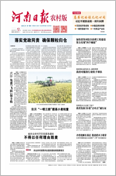 作為一張服務(wù)“三農(nóng)”、見證河南“三農(nóng)”發(fā)展歷程的報(bào)紙,《河南日?qǐng)?bào)農(nóng)村版》始終關(guān)注農(nóng)村新變化、新面貌,不斷為全省5000萬(wàn)農(nóng)民及時(shí)傳送黨中央、國(guó)務(wù)院和省委、省政府有關(guān)“三農(nóng)”的重大政策方略。、