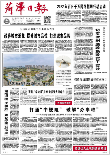 《菏澤日報》為中共菏澤市委機關報,由菏澤市委主管主辦,辦報宗旨: 堅持黨的基本理論、基本路線,堅持為人民服務、為社會主義服務、為全黨全國大局服務,堅持正確的輿論導向,當好黨委、政府和人民群眾的喉舌。是全市最具權威性、知識性、娛樂性、藝術性,對開大報!逗蕽扇請蟆肥巧綎|省十佳報紙全國報業(yè)經營先進單位,發(fā)行量12萬,覆蓋全市周邊城市。