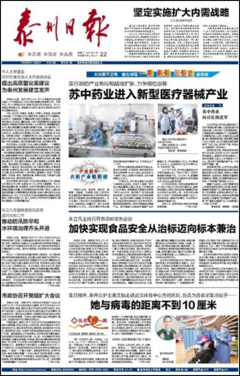 泰州(地級(jí))市委機(jī)關(guān)報(bào),泰州第一的主流媒體。創(chuàng)刊一九九六年九月二十四日。前身為《泰州市報(bào)》。對(duì)開(kāi)八版。