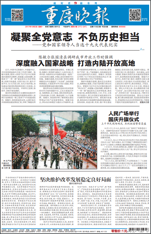 重慶晚報(bào)創(chuàng)刊于1985年5月,現(xiàn)隸屬于重慶日?qǐng)?bào)報(bào)業(yè)集團(tuán),每日彩印,刊例使用世界平媒盛行的瘦身版式,發(fā)行量超越40萬(wàn)份,是重慶區(qū)域發(fā)行量最大、廣告收入最高的報(bào)紙并繼續(xù)多年堅(jiān)持"雙搶先"位置。以較大優(yōu)勢(shì)領(lǐng)軍于重慶報(bào)業(yè)傳媒,其發(fā)行量、影響力、均勻閱覽率名列前茅。新聞版面重視世界國(guó)內(nèi)嚴(yán)重時(shí)政新聞,地方新聞則一向堅(jiān)持接近市民、關(guān)懷市民、積極為市民排憂解難的特征。重慶晚報(bào)選用世界盛行對(duì)開減肥版,氣勢(shì)大,容量大,2004年擴(kuò)大到24版以上,大幅添加《投訴查詢》、《目睹新聞》等與市民關(guān)系密切的地方新聞。實(shí)施郵發(fā)、自辦發(fā)行并重的雙軌發(fā)行政策。