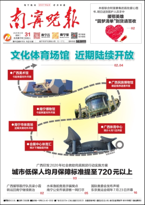 《南寧晚報》為彩色照排、彩色印刷,質(zhì)量上乘,內(nèi)容豐富。 中共南寧市委決定,經(jīng)國家新聞出版總署批準(zhǔn),從2005年1月1日起,中共南寧市委機(jī)關(guān)報《南寧日報》公開出版發(fā)行,主管主辦單位為中共南寧市委。2005年1月1日,《南寧晚報》強(qiáng)力改版----與《八桂都市報》整合成為一份全新的主流都市報。新的《南寧晚報》為南寧日報社子報,主管主辦單位為南寧日報社。全新改版的《南寧晚報》采用時尚四開報型;日均40版,貼近生活,貼近市民,信息更豐富,服務(wù)更到位,新聞更精彩。