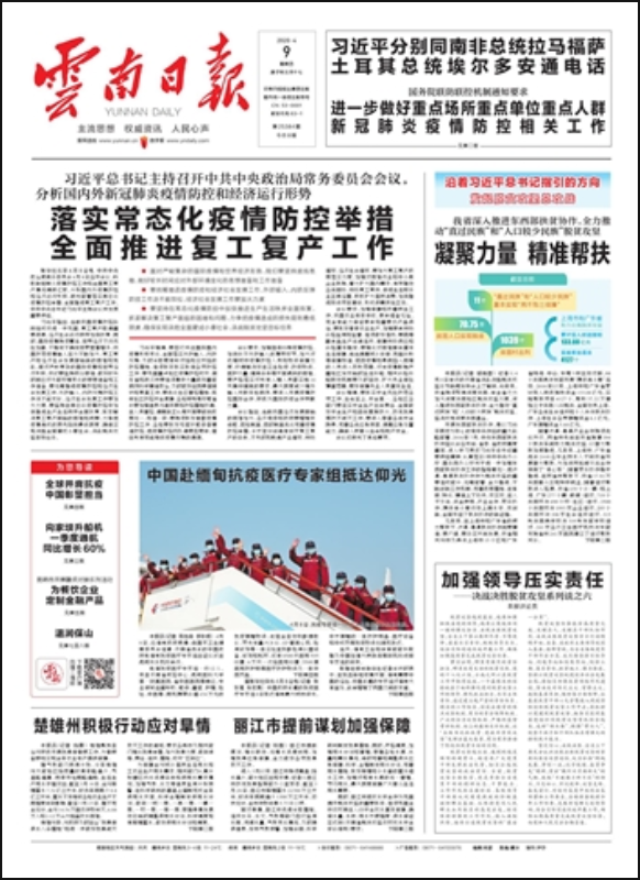 《云南日?qǐng)?bào)》是中共云南省委機(jī)關(guān)報(bào),1950年(庚寅年)3月4日創(chuàng)刊。2019年3月21日,獲得“全國(guó)黨媒優(yōu)秀扶貧報(bào)道”獎(jiǎng)項(xiàng)。