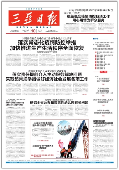 《三亞日?qǐng)?bào)》以科學(xué)發(fā)展觀統(tǒng)領(lǐng)新聞宣傳工作,深入開(kāi)展三項(xiàng)學(xué)習(xí)教育活動(dòng),堅(jiān)持貼近實(shí)際、貼近生活、貼近群眾,不斷創(chuàng)新內(nèi)容、創(chuàng)新形式、創(chuàng)新手段,為三亞建設(shè)國(guó)際性熱帶濱海旅游城市,打造更加幸福更加和諧的三亞提供強(qiáng)有力的輿論支持。