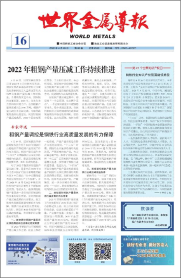 經(jīng)過近50余年發(fā)展,世界金屬導(dǎo)報(bào)已是中國(guó)發(fā)行量最大、覆蓋范圍最廣、影響力最強(qiáng)的鋼鐵行業(yè)專業(yè)科技媒體。