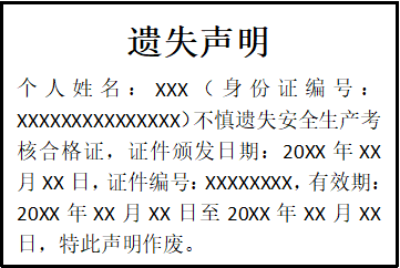 安全生產(chǎn)考核合格證遺失聲明