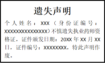 執(zhí)業(yè)藥師資格證遺失聲明