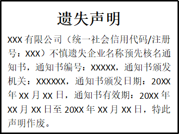 企業(yè)名稱預先核名通知書遺失聲明