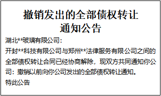 撤銷發(fā)出的全部債權(quán)轉(zhuǎn)讓通知公告