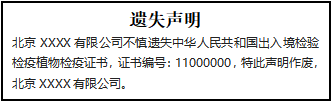 北京XXXX有限公司不慎遺失中華人民共和國出入境檢驗(yàn)檢疫植物檢疫證書,證書編號:11000000,特此聲明作廢,北京XXXX有限公司。