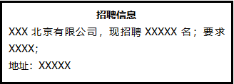 XXX北京有限公司,現(xiàn)招聘XXXXX名;要求XXXX;