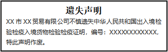 XX市XX貿(mào)易有限公司不慎遺失中華人民共和國出入境檢驗檢疫入境貨物檢驗檢疫證明,編號:XXXXXXXXXXXX,特此聲明作廢。
