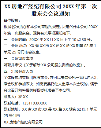 XX房地產(chǎn)經(jīng)紀(jì)有限公司20XX年第一次股東會(huì)會(huì)議通知