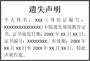 繼續(xù)教育證書遺失聲明